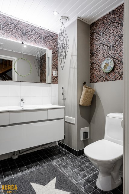 - Alakerrassa tilava wc. Allaskaluste ja valopeili uusittu. Led valaistus.