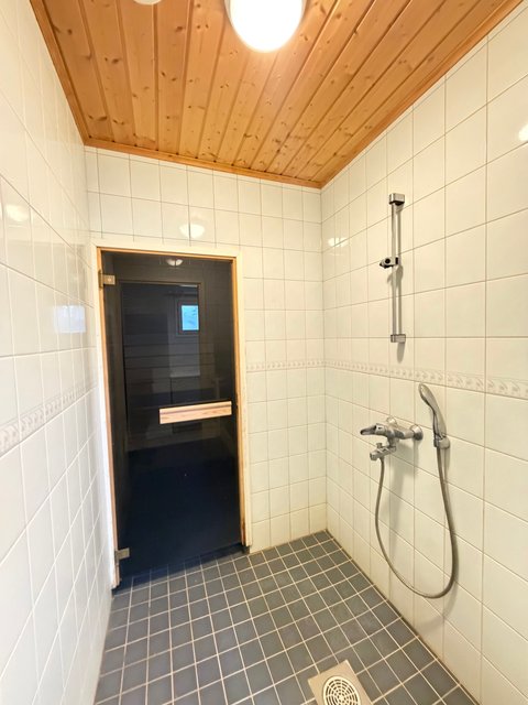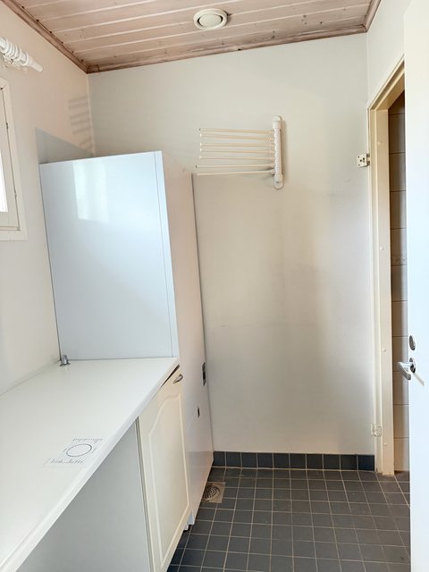 - Lattialämmitys, pyykkikaapit, pöytätaso, pesukoneliitäntä, ja lattiakaivo