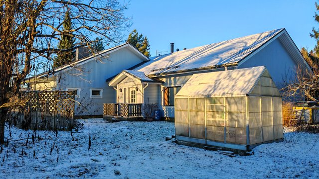 -uusi ulkovuoraus pohjamaalatulla ulkovuorauspaneelilla (Pohjamaali sisältää puun sinistymistä ja homehtumista estäviä aineita)