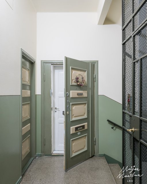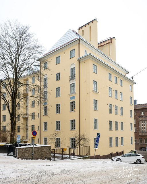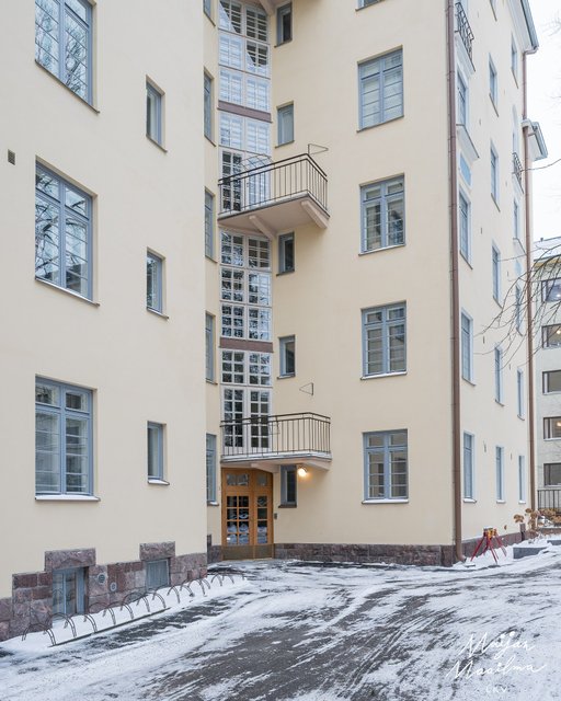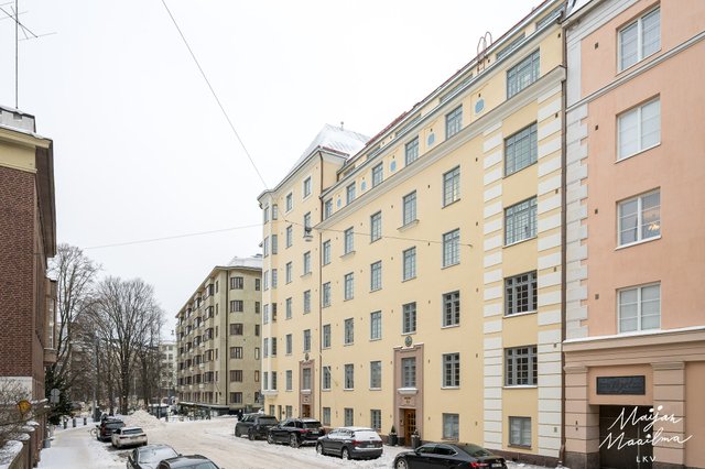 Asunto sijaitsee vuonna 1928 valmistuneessa taloyhtiössä ja samaa pian jo sata vuotta vanhaa arvokkuutta huokuvat taloyhtiön porrashuone, asunnon syvät ikkunalaudat, ruutuikkunat, puupeiliovet, lautalattiat, kattorosetit ja mukava huonekorkeus (n. 3 metriä). Yhtiö on hyvin hoidettu ja esimerkiksi LVIS-remontti on tehty vuonna 2016, katon peruskorjaus, julkisivun kunnostus ja ikkunoiden uusiminen vuosina 2021-2022, piha-alueet on uusittu vuonna 2024 ja porrashuoneiden pintaremontti on tehty vuosina 2024-2025.