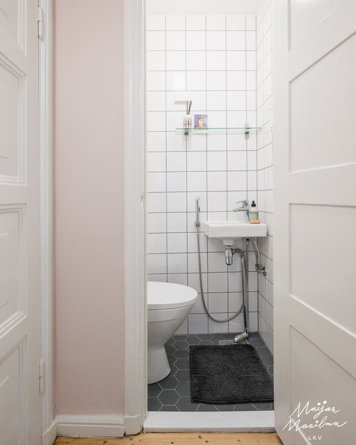 - Lattia laattaa ja seinät laattaa. Allas, allashana, bideesuihku, wc-istuin.