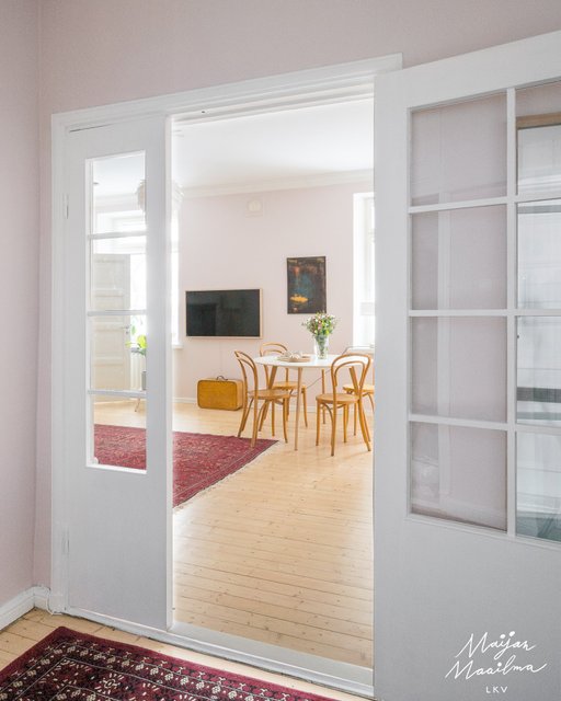 Asunnon olohuone on tilava ja sinne mahtuu myös ruokailuryhmä, ikkunat aukeavat Olaus Petrin kirkon suuntaan. Makuuhuoneita on kaksi, joista toinen on Apollonkadun puolella, toisen ikkunat aukeavat sisäpihalle. Uusitussa keittiössä on ajaton ilme, lasku- ja säilytystilaa on mukavasti. Remontissa uusitut keittiön kodinkoneet on integroitu kalusteisiin. Kylpyhuoneessa on tilaa myös pyykkihuollolle, ikkuna mahdollistaa tuulettamisen. Erillinen wc lisää toiminnallisuutta. Asunnossa on runsaasti säilytystilaa vaatekaapistoissa, kiinteissä komeroissa, walk in -vaatehuoneessa ja yhtiön tarjoamassa kellarikomerossa. Asuntoon on hyvällä suunnittelulla saatu luotua mahdollisimman tehokkaita ja sisustukseen saumattomasti sulautuvia ratkaisuja. Tämä asunto on poikkeuksellisen tunnelmallinen ja remontoitu vanhaa kunnioittaen.