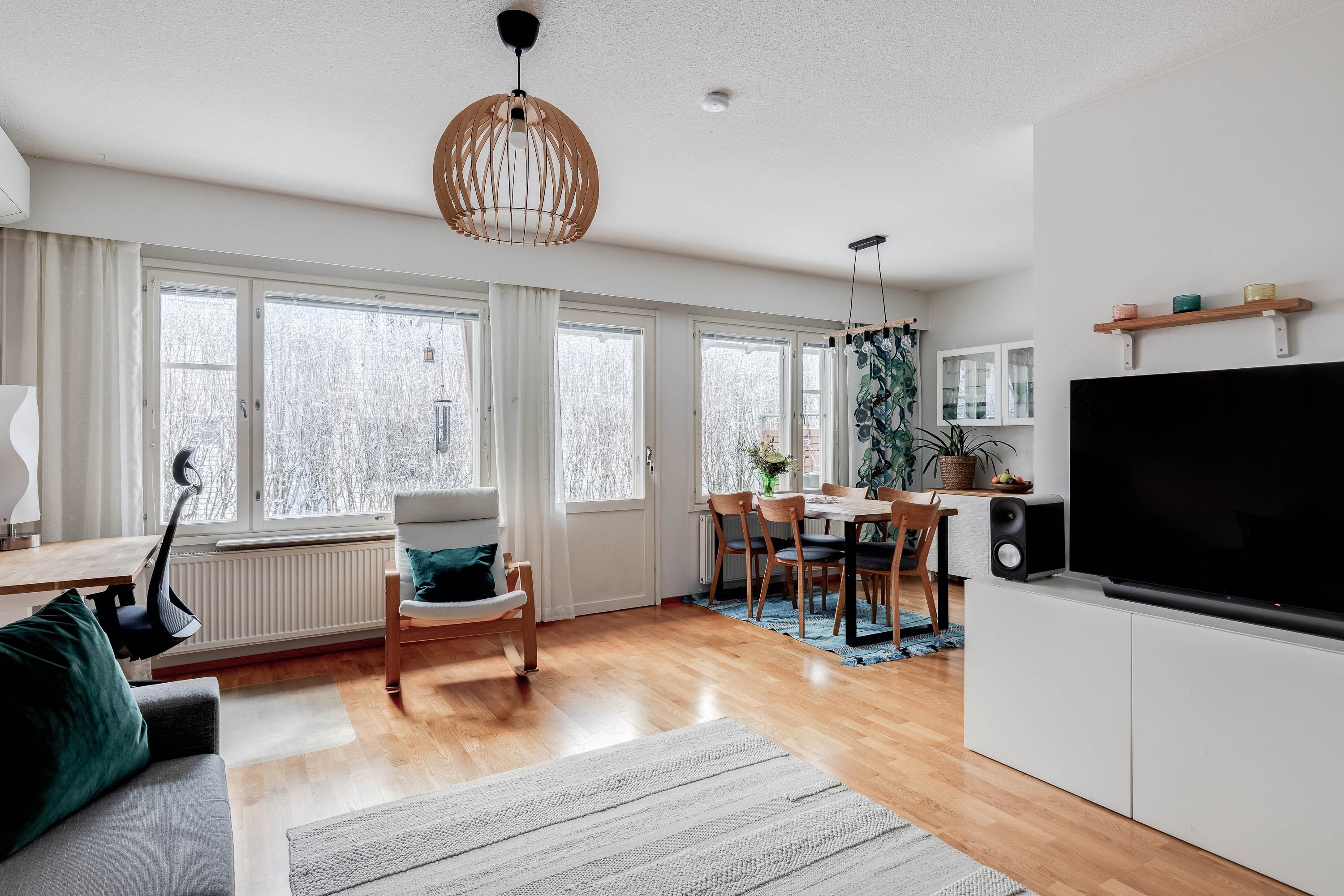 Tämä valoisa ja avarapohjainen rivitalohuoneisto Vantaan Ylästössä tarjoaa ihanteellisen kodin perheelle joka arvostaa yksitasoista asuntoa.