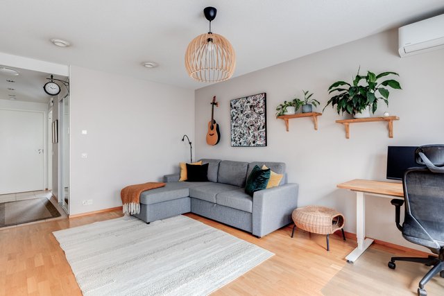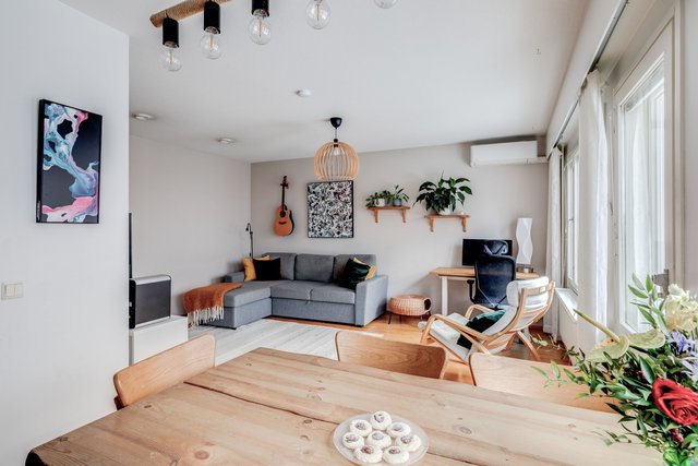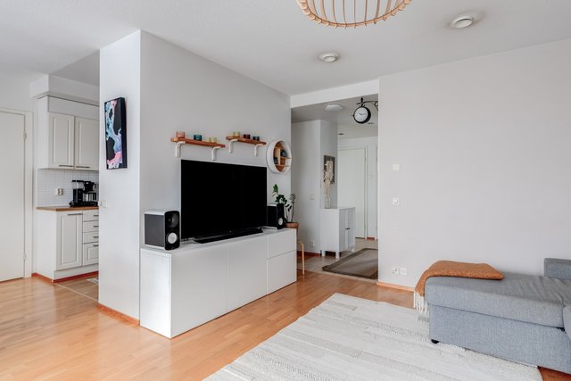 Asunnossa on kaksi makuuhuonetta, tilava olohuone sekä moderni keittiö, joka on varustettu laadukkailla kodinkoneilla. Sauna tarjoaa rentouttavat löylyt, ja kodinhoitohuoneessa on kaikki tarvittava pyykkihuoltoon. Kodinhoitohuoneen kautta saunasta pääsee kätevästi vilvoittelemaan suojaisalle terassi ja piha-alueelle.