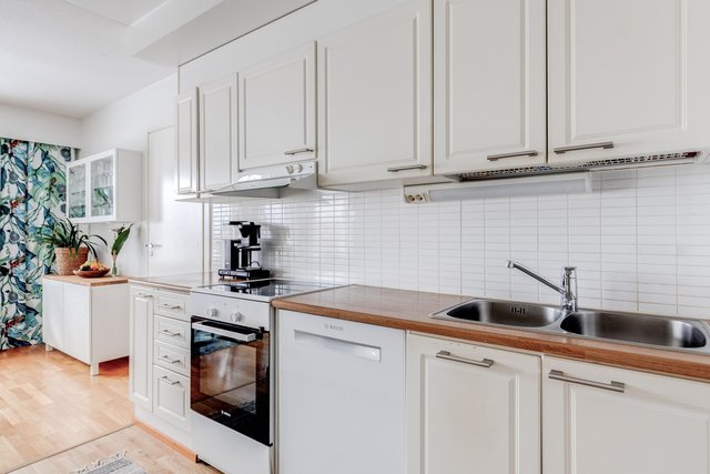 - kaapistot, jääkaappi, pakastin Samsung, astianpesukone Bosch, uuni/liesi Bosch.