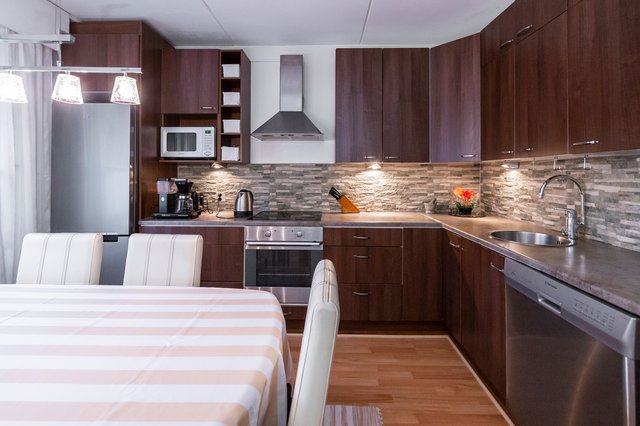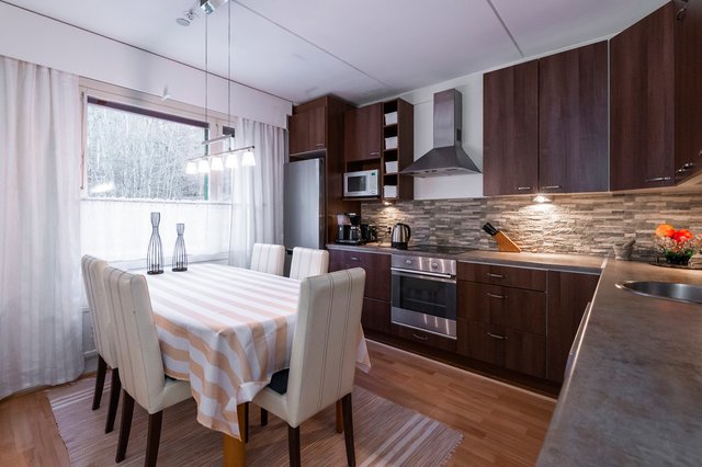 - Jääkaappipakastin, erillisuuni (Kiertoilma, 60 cm), liesituuletin, astianpesukone, ja liesi (Liesitaso)