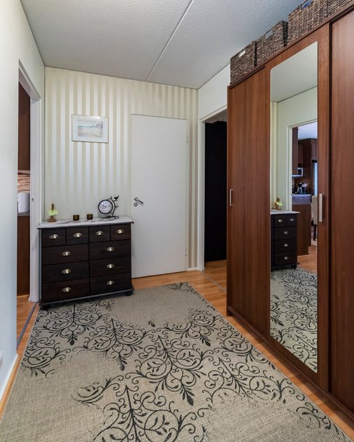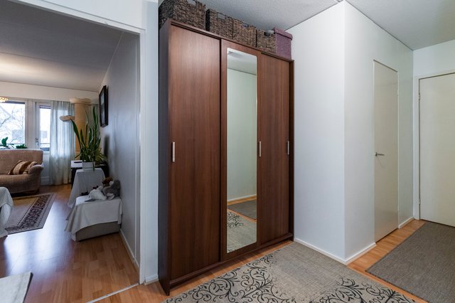 - Korkeat kaapistot olohuoneessa, makuuhuoneessa ja eteisessä.