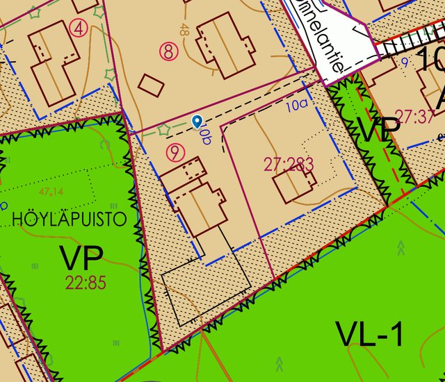 - Reilunkokoinen tasainen puutarhatontti, joka rajoittuu kahdelta sivulta puistoalueeseen.