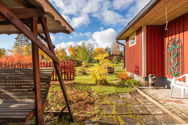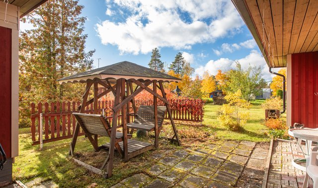 Talon iso piha-alue on nurmella ja siellä on istutuksia sekä marjapensaita, jotka tuovat mukavaa vehreyttä ympäristöön. Takapihan suojaisa terassi länteen päin on täydellinen paikka nauttia ilta-auringosta.