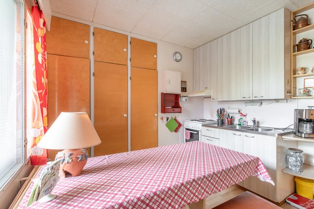 Tämä vuonna 1966 valmistunut yksitasoinen puutalo tarjoaa mukavat puitteet viihtyisään asumiseen. Talon 85 neliömetriä käsittää olohuoneen, keittiön, kolme makuuhuonetta, työ-/askarteluhuoneen, pesutilat sekä autotallin.