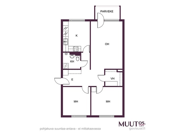 - Edellä mainittu pinta-ala saattaa tämän ikäisessä kohteessa poiketa olennaisestikin huoneiston nykyisen ja rakentamisaikaisen mittaustapojen ja standardien mukaan laskettavasta pinta-alasta. Huoneiston todellinen pinta-ala voi olla yhtiöjärjestyksessä, isännöitsijäntodistuksessa ja esitteessä mainittua pienempi tai suurempi. Hinta ei ole pinta-alaperusteinen. Yhtiöjärjestyksen mukainen huoneistoselitelmä: 3h+k