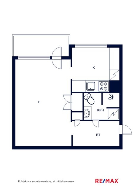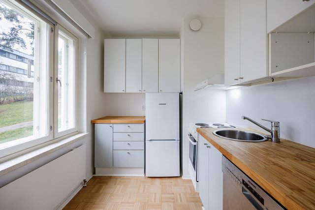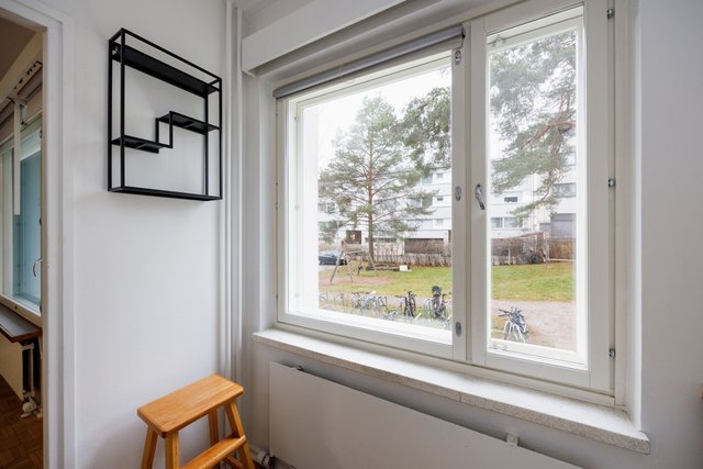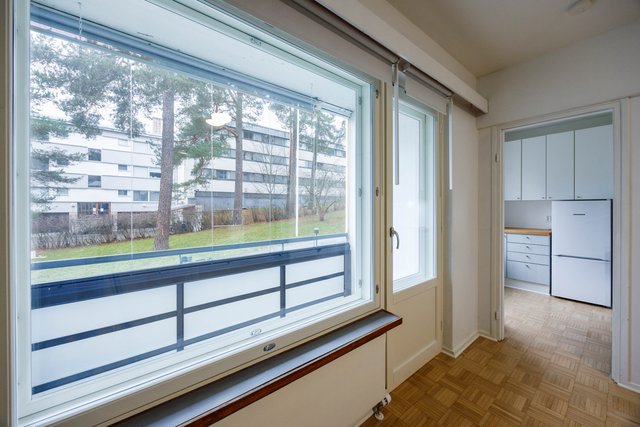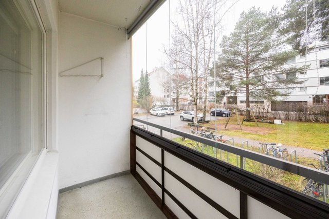 Velaton, hyvässä kunnossa oleva parvekkeellinen yksiö, joka on käytännössä toisessa kerroksessa. Erittäin selkeä pohja ja asunnossa on sopivan kokoinen keittiö sekä kylpyhuone. Lasitetulle parvekkeelle on kulku olohuoneesta ja asunnon ikkunat suuntaavat länteen, ilta-auringon suuntaan. Asunto on remontoitu ja kylpyhuone kunnostettiin v. 2020 perinteisen putkiremontin yhteydessä. Hoitovastike on maltillinen, vain 5,20 €/ m2/ kk.