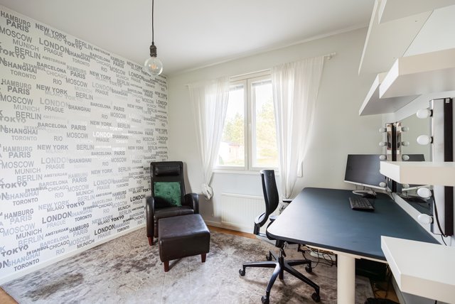 - 2023 Päämakuuhuoneen lattia uusittu (Wovon) struktuurivinyyli. 2021 Työhuoneen (mh) lattia vaihdettu Timerwisen lankkuparkettiin. 2021 Kaikki pinnat maalattu. 2020 Kaapistot uusittu kahteen mh
