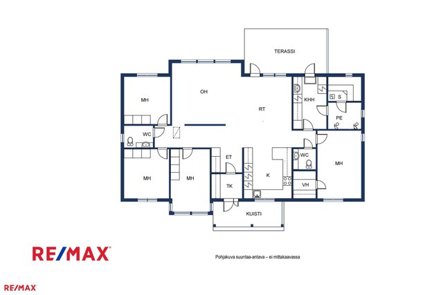 5h, avokeittiö, rt, kph, s, 2xwc, läm.käyttöullakko, terassi, piha