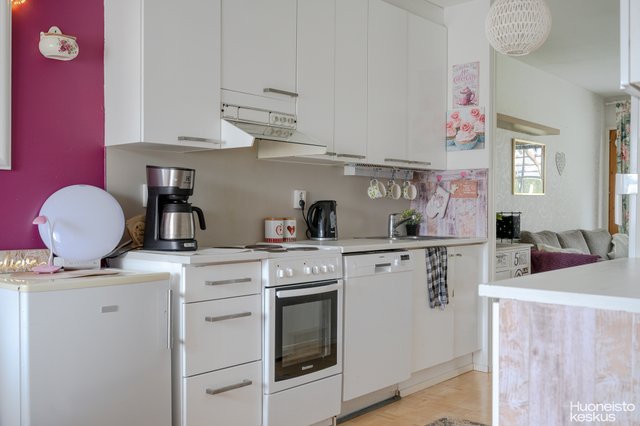 - Jääkaappi, erillinen pakastin, liesi, astianpesukone, ja liesituuletin