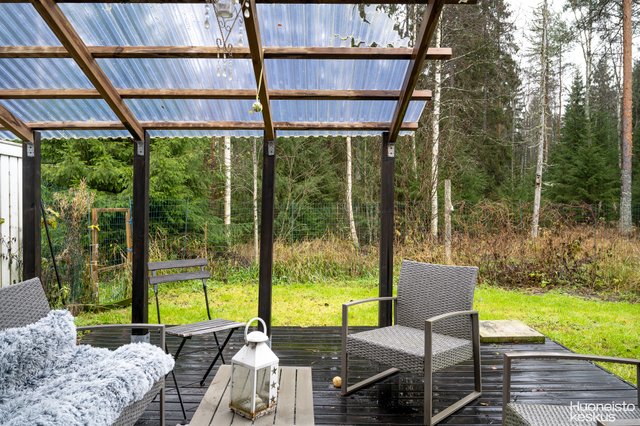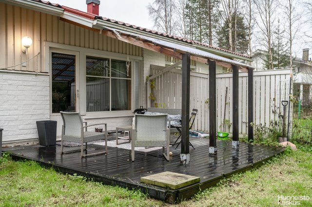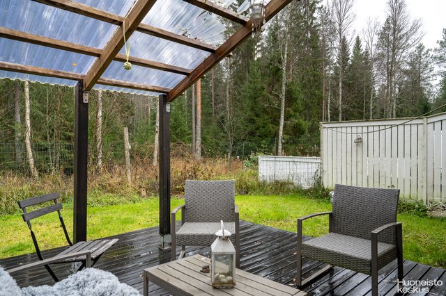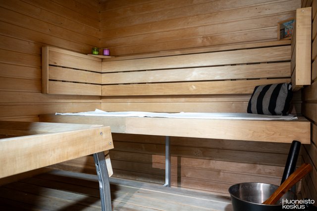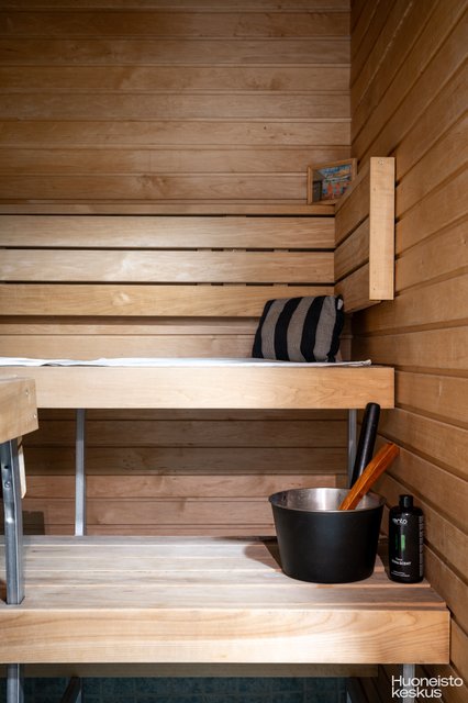 Keittiö on omana tilana olohuoneen yhteydessä ja tilavassa kylpyhuoneessa on mukavasti tilaa myös pyykkihuollolle. Omassa saunassa on kiva rentoutua päivän päätteeksi. Asunnon takapihan terassi avautuu metsän suuntaan, jossa voi nauttia ulkoilmasta rauhassa.