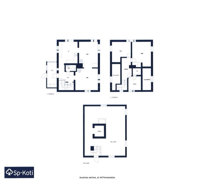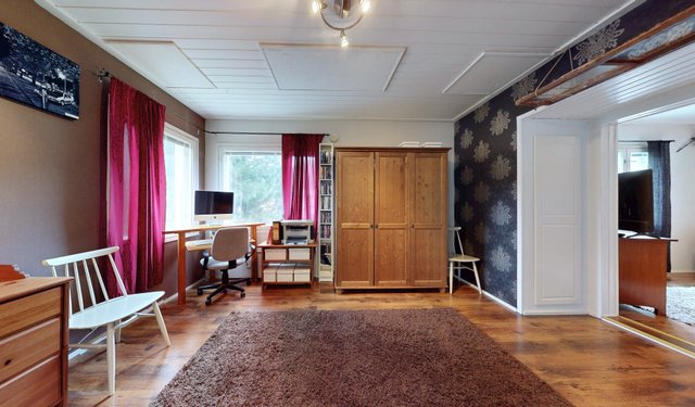 - Yläkerrassa kaksi makuuhuonetta. Alakertaan mahdollista tehdä makuuhuone myös keittiön ja olohuoneen väliseen huoneeseen.