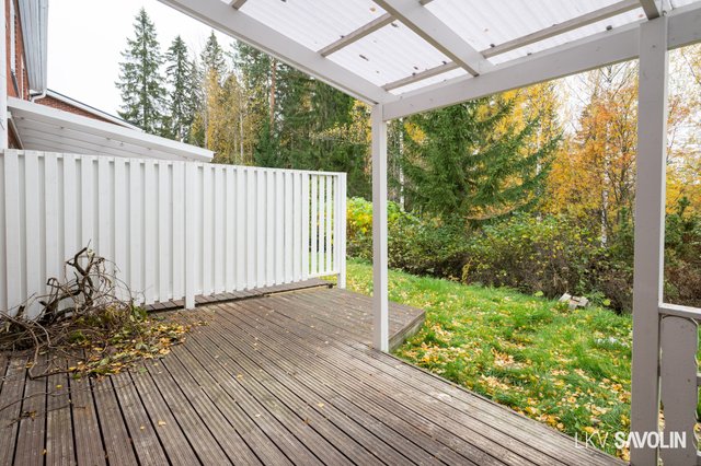 Olohuoneesta ja makuuhuoneista avautuvat vehreät näkymät puistoalueelle, mikä tuo luonnon lähelle arkea. Takapihalla on tilava, osittain katettu terassi, joka kutsuu nauttimaan ulkoilmasta. Pihojen väliaidat ollaan uusimassa meneillään olevan remontin yhteydessä. Asunnossa on myös oma sauna ja kylpyhuone, joka on uusittu 2021.