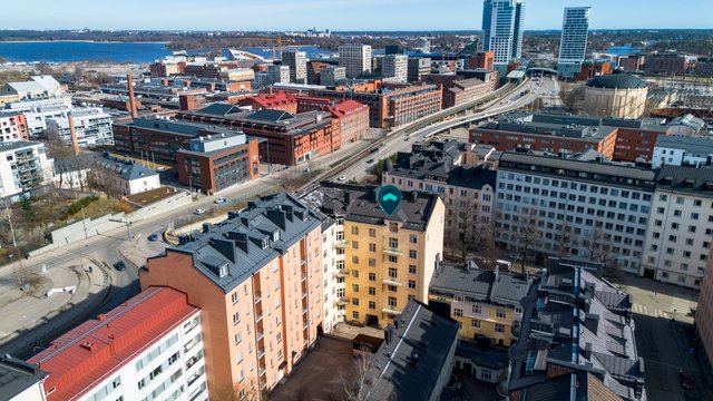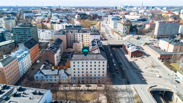 Asunnon sijainti on mitä parhaimpia. Muutaman minuutin matka metroasemalle ja vierestä kulkevat monet bussilinjat sekä raitiovaunu. Päivittäistavarakauppa on aivan vieressä ja Kallion monipuoliset palvelut lähietäisyydellä. Kauppakeskus Redi sekä Teurastamon palvelut ja tapahtumat ovat myös nopeasti saavutettavissa.