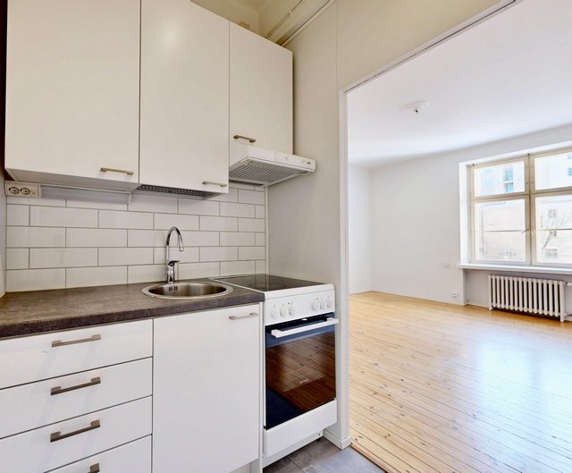 Tämä yksiö hurmaa toimivalla pohjaratkaisullaan ja avaralla tunnelmallaan. Tilava huone tarjoaa mukavasti tilaa niin sängylle, ruokaryhmälle kuin muillekin kalusteille, ja ikkunasta näkymät rahalliselle sisäpihalle. Lautalattia tuo tunnelmaa asuntoon. Keittiö on kompakti mutta käytännöllinen. Kylpyhuone on vaaleen sävyinen ja uusittu putkiremontin yhteydessä sekä taloyhtiöstä löytyy pesula.