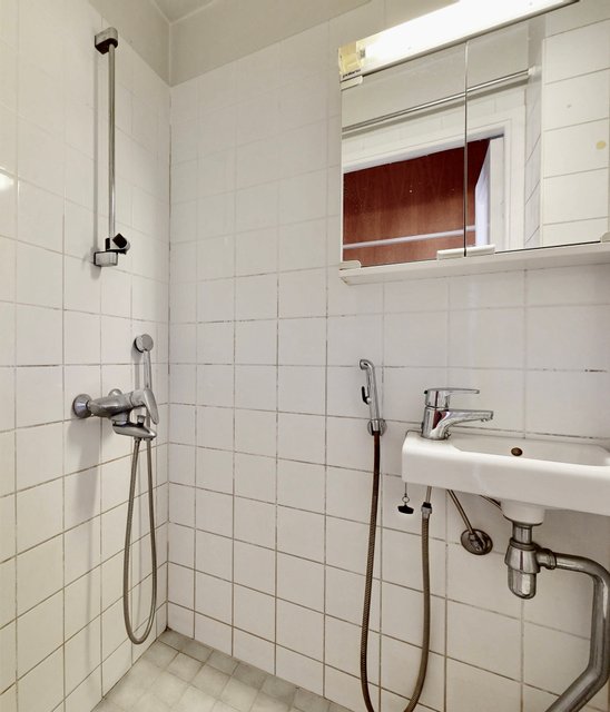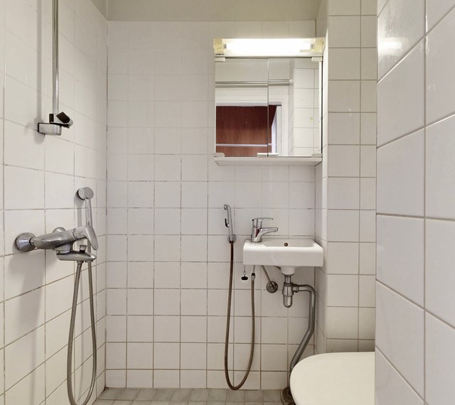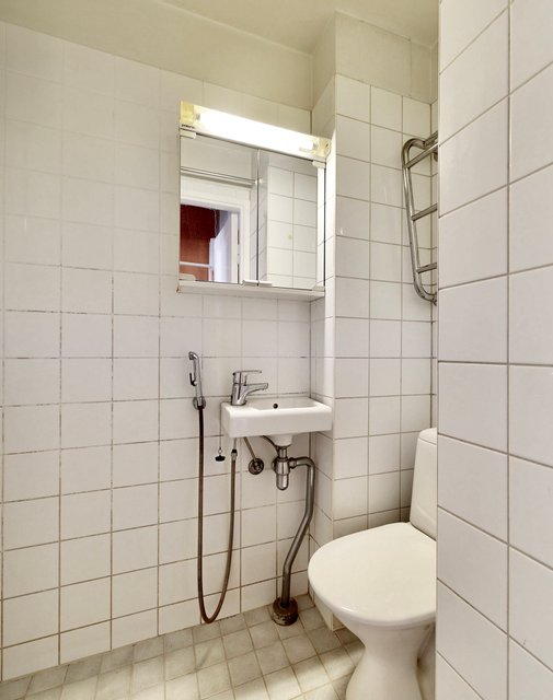 - VARUSTUS: Suihku, WC-istuin, Hana, Allas, Peilikaappi, Lattialämmitys (sähkö). SEINÄT: Kaakeli. LATTIA: Laatta.