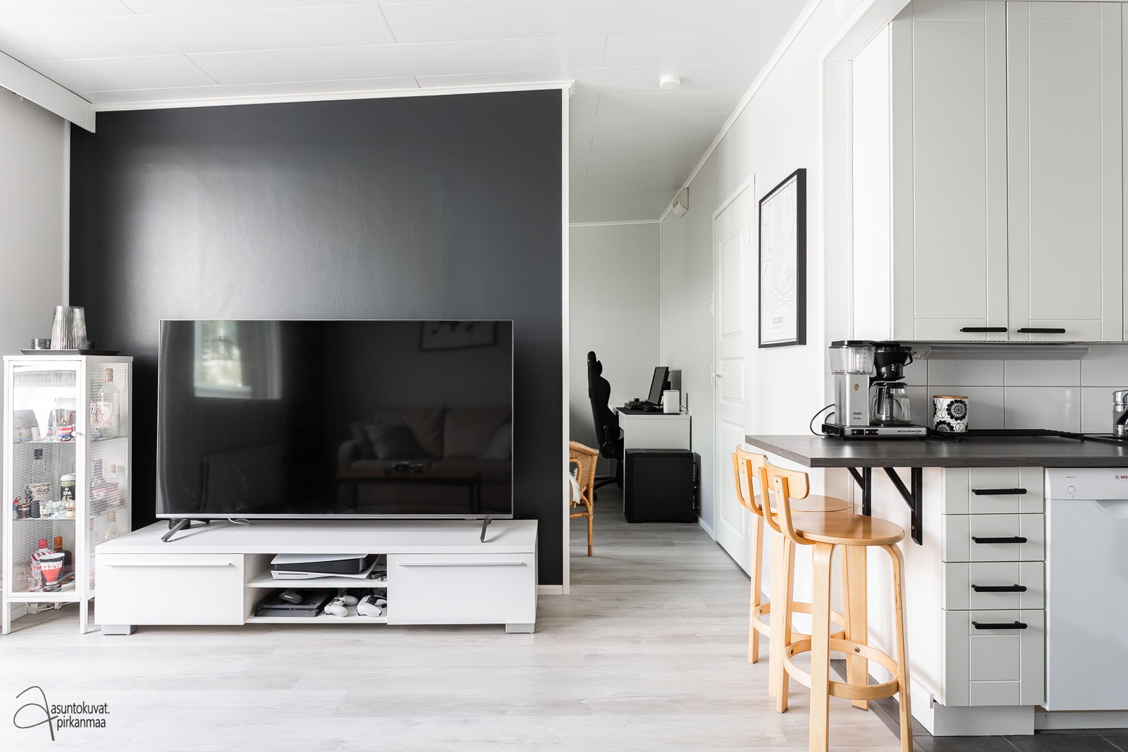- Kiinteät kaapistot, kiinteät valaisimet, verhokiskot, naulakot.