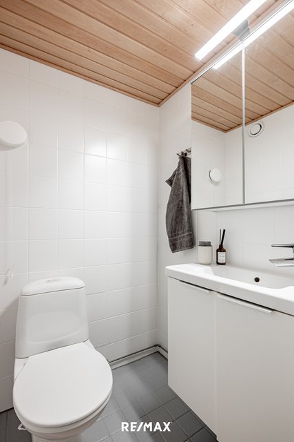 - Erillinen WC 1 (alakerta) Varustus: - Peilikaappi - WC - Allaskaappi Lattia: laatta Seinät: laatta Erillinen WC (yläkerta) Varustus: - WC - Peilikaappi - Allaskaappi - Suihku - Suihkuseinä Lattia: laatta Seinät: laatta Pesutilojen laatoitukset ovat alkuperäiset, eli 25- vuotta vanhat.