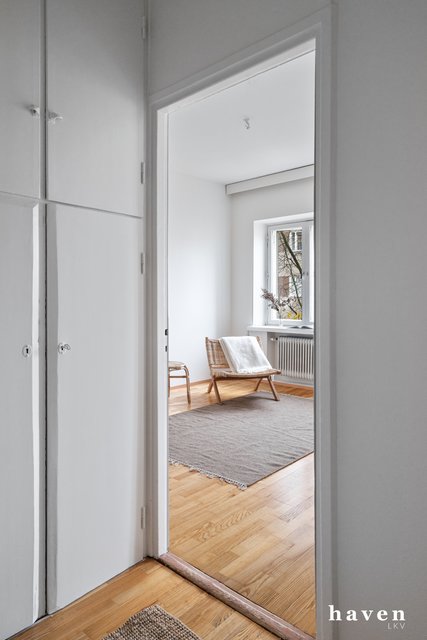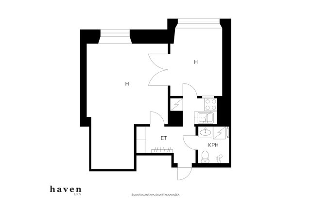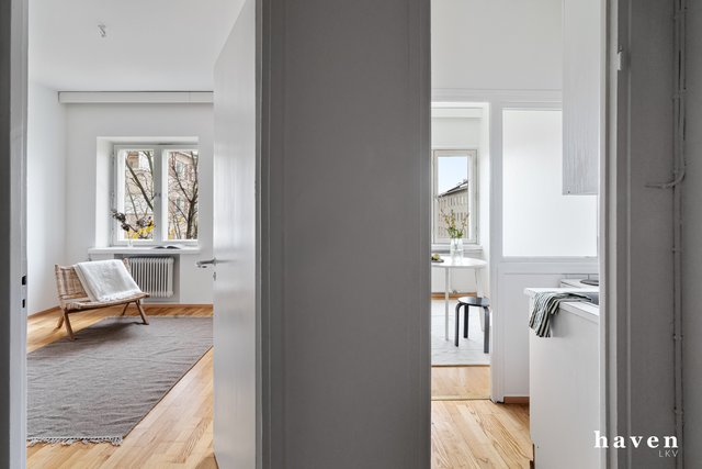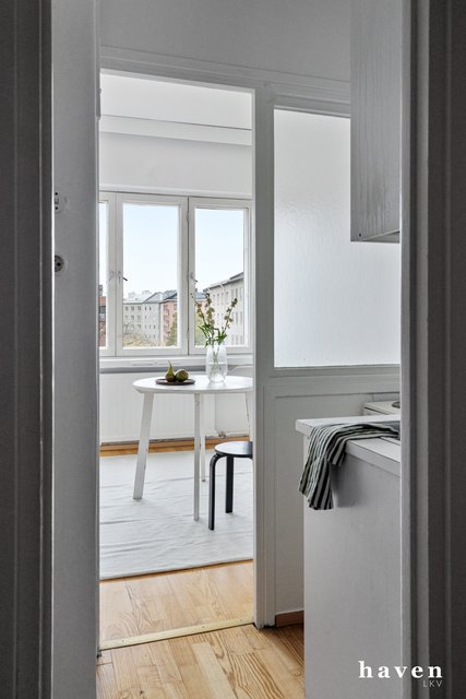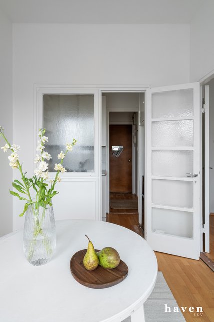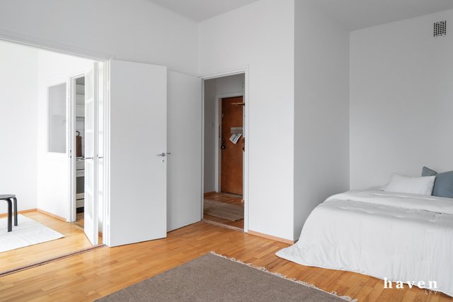 Asunnon pohjaratkaisu on tehokas ja valoisa. Tilavat pariovet huoneiden välillä tuovat avaruutta ja klassista charmia. Asunto on juuri kauttaaltaan maalattu ja vanhemman, lasiovella ja -ikkunalla varustetun viehättävän keittokomeron voi halutessaan uusia mieleiseksi. Kylpyhuone on remontoitu putkiremontin yhteydessä.