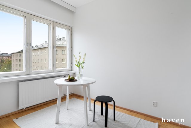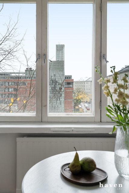 Tervetuloa Taka-Töölöön tutustumaan tähän hurmaavaan 35 m² kaksioon, joka sijaitsee Päivärinnankadun viihtyisässä ympäristössä hissitalon 5. kerroksessa. Asunnosta avautuvat ainutlaatuiset näkymät suoraan Alvar Aallon suunnittelemalle Kelan pääkonttorille. Lisäksi kadun puoleisten puiden latvusto tuo vehreyden urbaaniin ympäristöön.