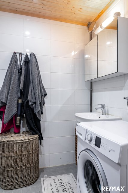 - Suihku, pesukoneliitäntä, lattialämmitys, ja pesuallas