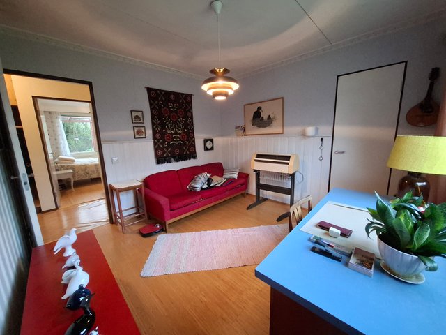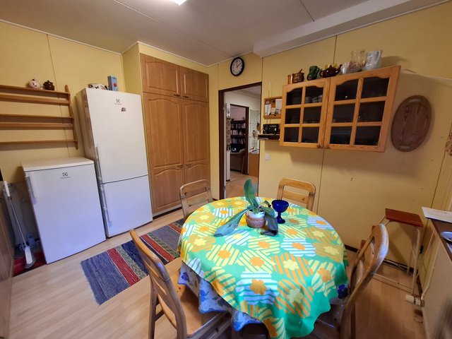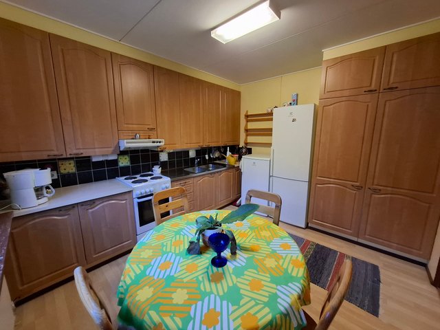 - Varustus: Jääkaappipakastin, jääkaappi, liesituuletin ja sähköliesi. Lattiassa laminaatti ja seinät maalattu.