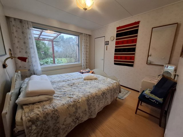 - Laminaattilattia ja tapetti / puolipaneeli. Kummankin makuhuoneen yhteydessä vaatehuone.