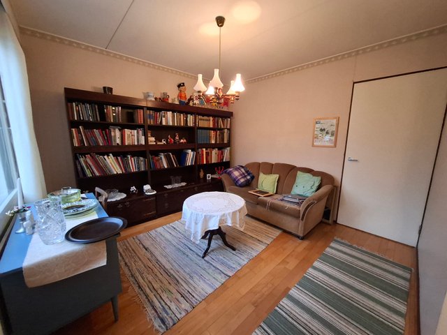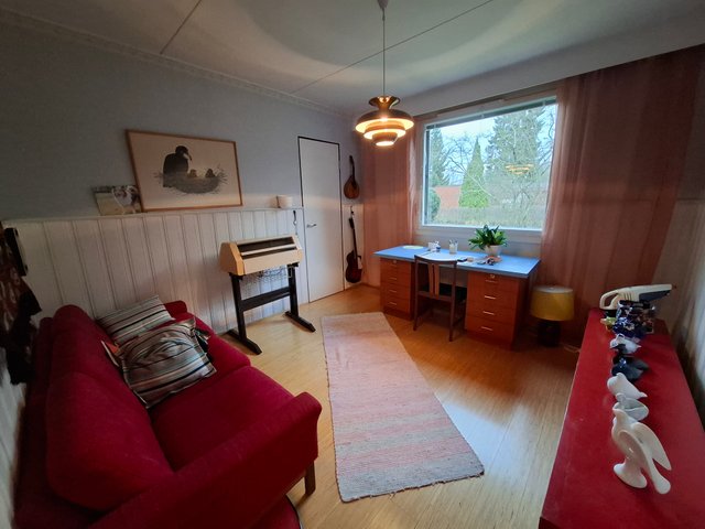 - Työhuoneessa parkettilattia ja seinät tapetoitu.