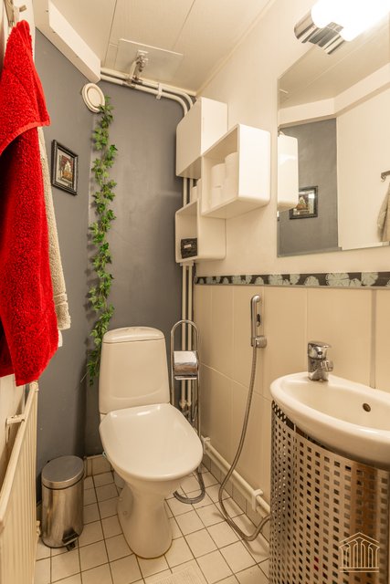 - WC-istuin, bidee-suihku, allaskaappi, pesuallas, peili, ja suihkukaappi