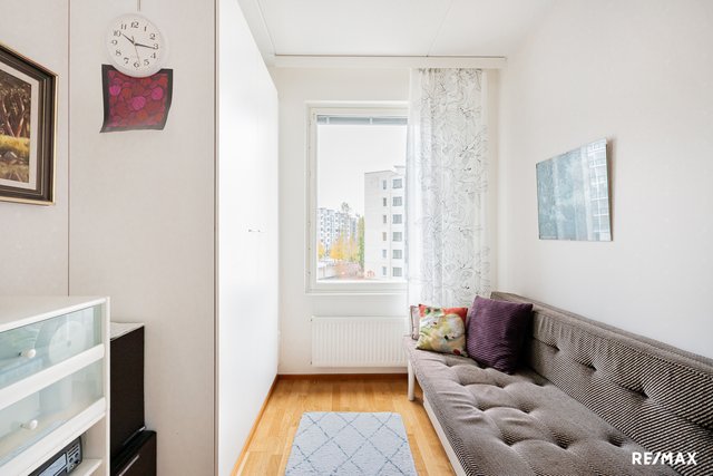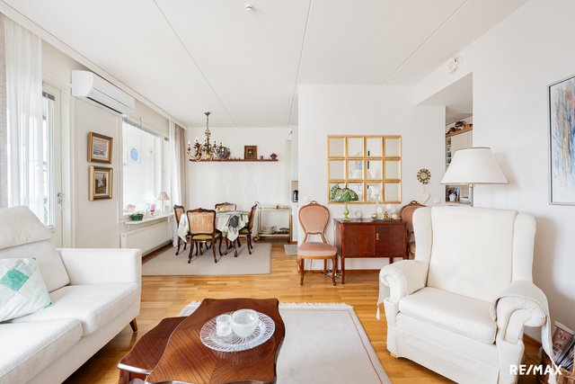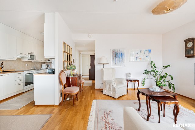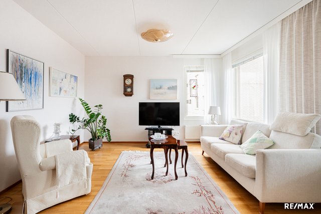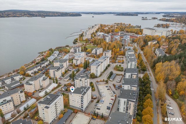 Valoisa kulmahuoneisto sijaitsee hissitalon neljännessä kerroksessa. Näkymät ikkunoista ovat osittain Vesijärvelle ja lasitettu parveke avautuu etelä/länsi suuntaan. Olohuone ja ruokailutila ovat yhtenäistä avointa tilaa. Olohuoneesta on käynti lasitetulle parvekkeelle joka tilansa puolesta on mahdollista kalustaa viihtyisäksi. Vaaleasävyisessä keittiössä on runsaasti kaapi ja työskentelytasoja joka helpottaa arkiaskareiden sujuvuutta. Makuuhuoneissa on kaapistot vaatesäilytykselle ja erillinen vaatehuone tuo mukavasti lisäsäilytystilaa. Tilava kylpyhuone ja sauna sekä erillinen wc tuovat käytännöllisyyttä ja asumismukavuutta. Säilytystiloina on kaapistot, vaatehuone ja huoneistokohtainen varasto. Kodin sisäpinnat ovat erittäin siistikuntoiset ja värimaailma on vaalean ajaton. Asunnon alkuperäinen omistaja on huolehtinut kodista vuosien varrella kiitettävästi.