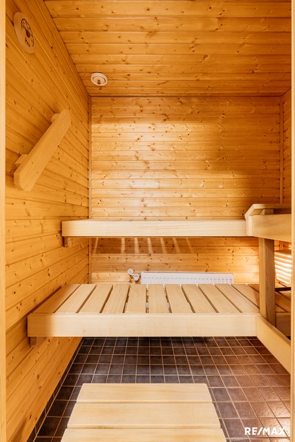 - Saunassa on sähkökiuas. Seinät on puupaneeli ja lattiat on laatoitettu.