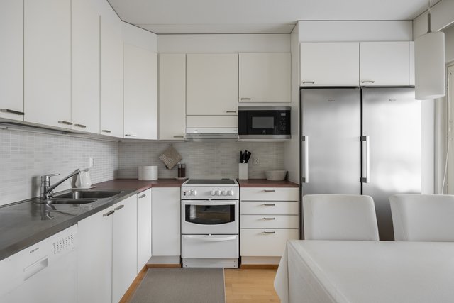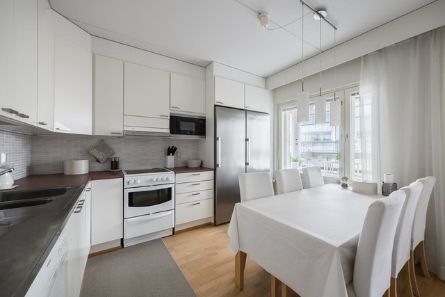 - Vaalean sävyinen keittiö. Laitteistoa osittain uusittu ja ledivalot lisätty.