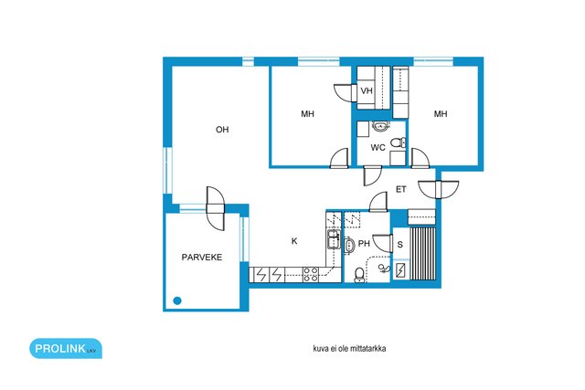 - Isännöitsijäntodistuksen mukainen, (Pinta-ala ei ole tarkistusmitattu ja todellinen pinta-ala voi olla suurempi tai pienempi, kuin ilmoitettu)