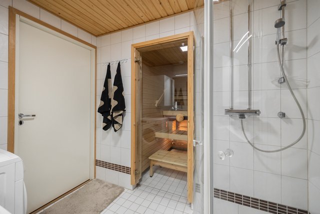 - Vaalean sävyinen tilava kylpyhuone. Oma sauna. Allaskaapistot uusittu.