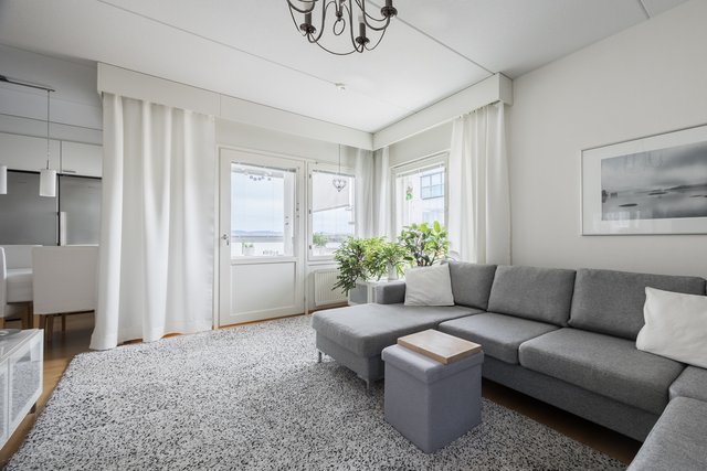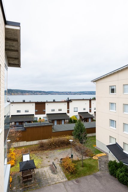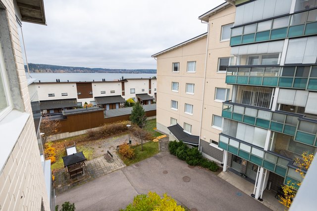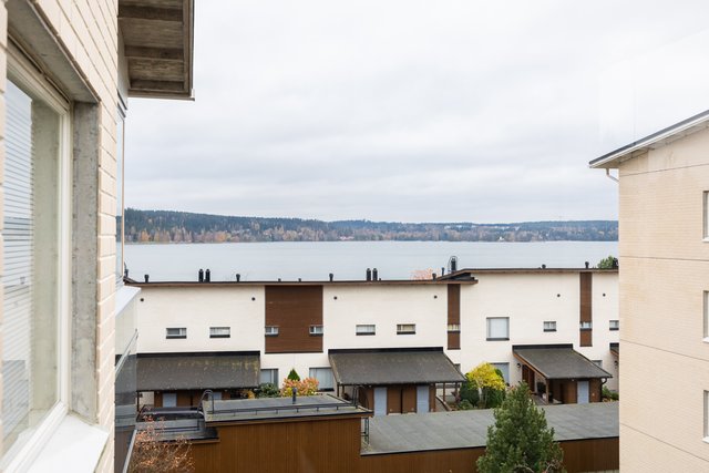 Ankkurin rantabulevardin viereltä kolmen huoneen asunto toiseksi ylimmän kerroksen Vesijärvinäkymillä.