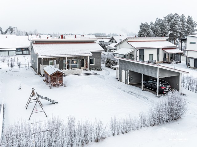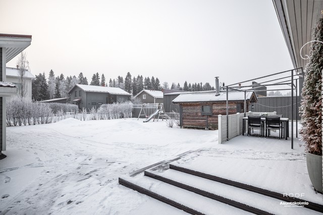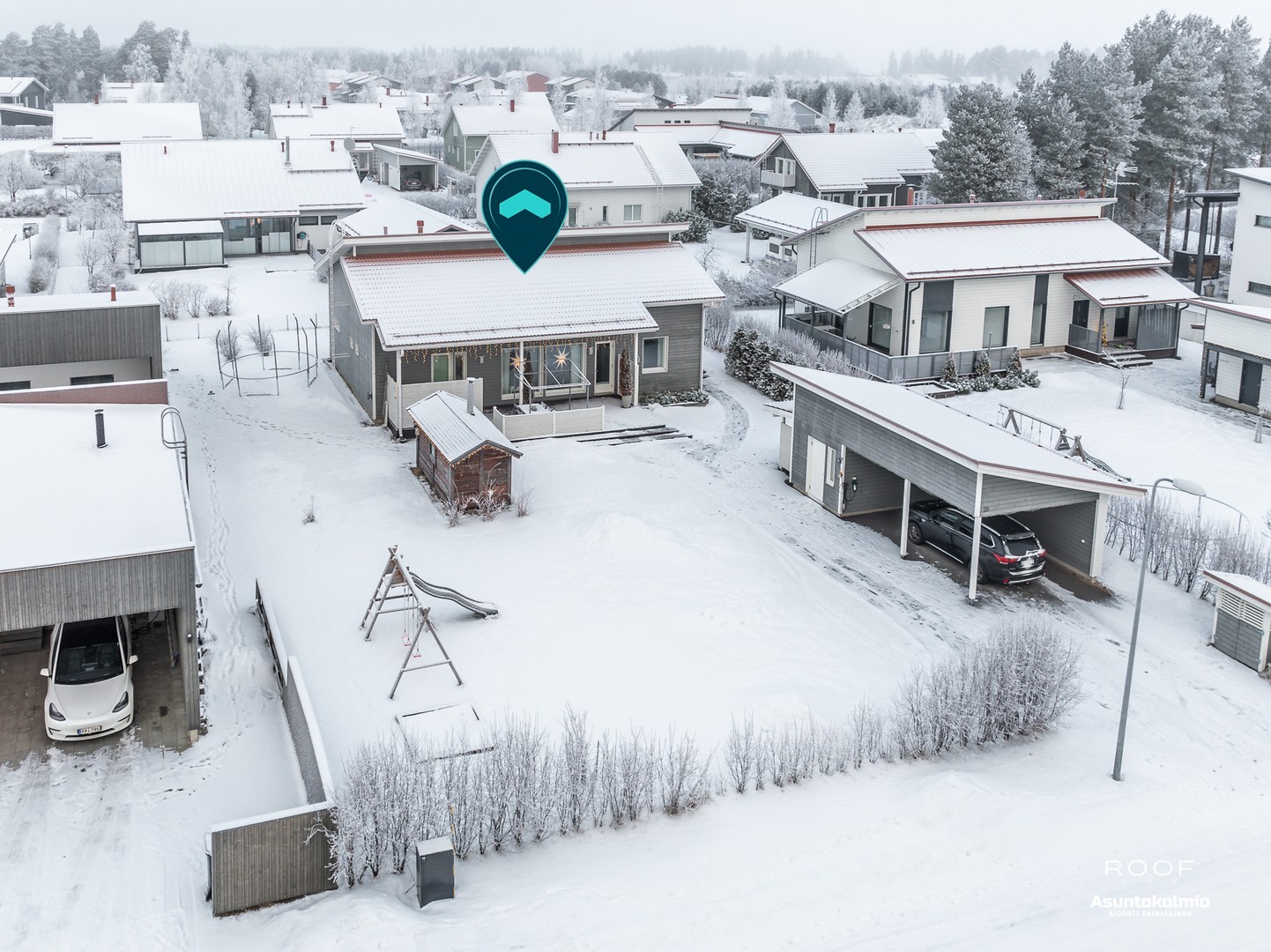 Sijainti tällä kodilla on myös hyvä, ja ihanteellinen lapsiperheitä ajatellen. Päiväkoteja löytyy useita kilometrin säteellä, ja lähin koulukin on aivan vieressä. Lähin kauppa löytyy myös viereisestä korttelista, ja Oulun Kaupunkiinkin siirryt omalla autolla parissakymmenessä minuutissa.
