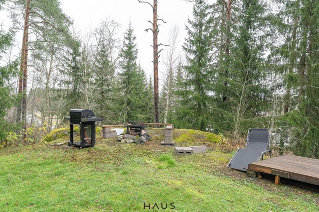 Rauhakylän vehreä ympäristö ja hyvät kulkuyhteydet tekevät tästä kodista rauhallisen mutta käytännöllisen valinnan luonnon ystävälle.