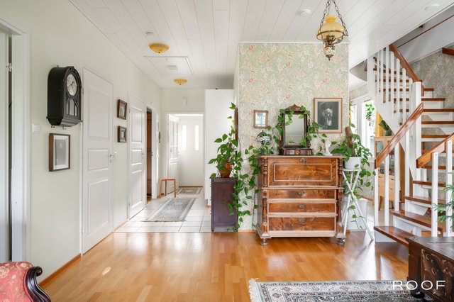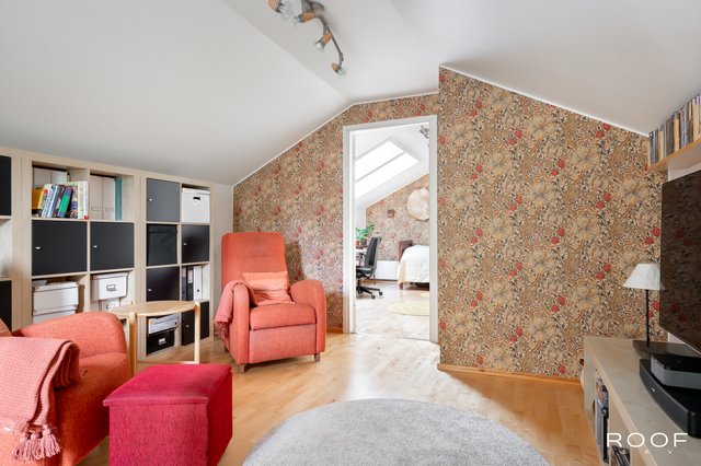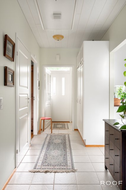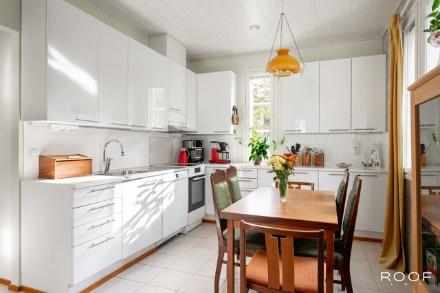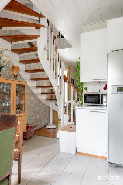 Asunnossa on kolme valoisaa ja tilavaa makuuhuonetta, sekä yläkerran aulatila, jotka tarjoavat runsaasti tilaa perheen eri tarpeisiin. Asunnon sydän on erillinen keittiö, jossa on tilaa ruokailuun ja ruoanlaittoon, ja se avautuu olohuoneeseen. Olohuoneesta kulku suoraan pihalle, jossa voit nauttia ulkoilmasta ja rentoutua omassa rauhassa. Pihan yksityisyys ja tilat antavat mahdollisuuden vaikka pihapeleihin tai grillaushetkiin.