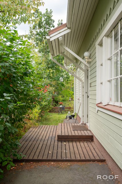 talon toiseen päätyyn, kattovuoto radonputken kohdalta korjattu (Seppo