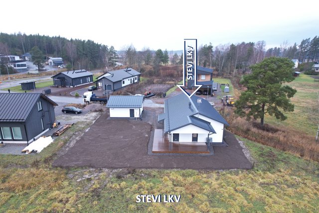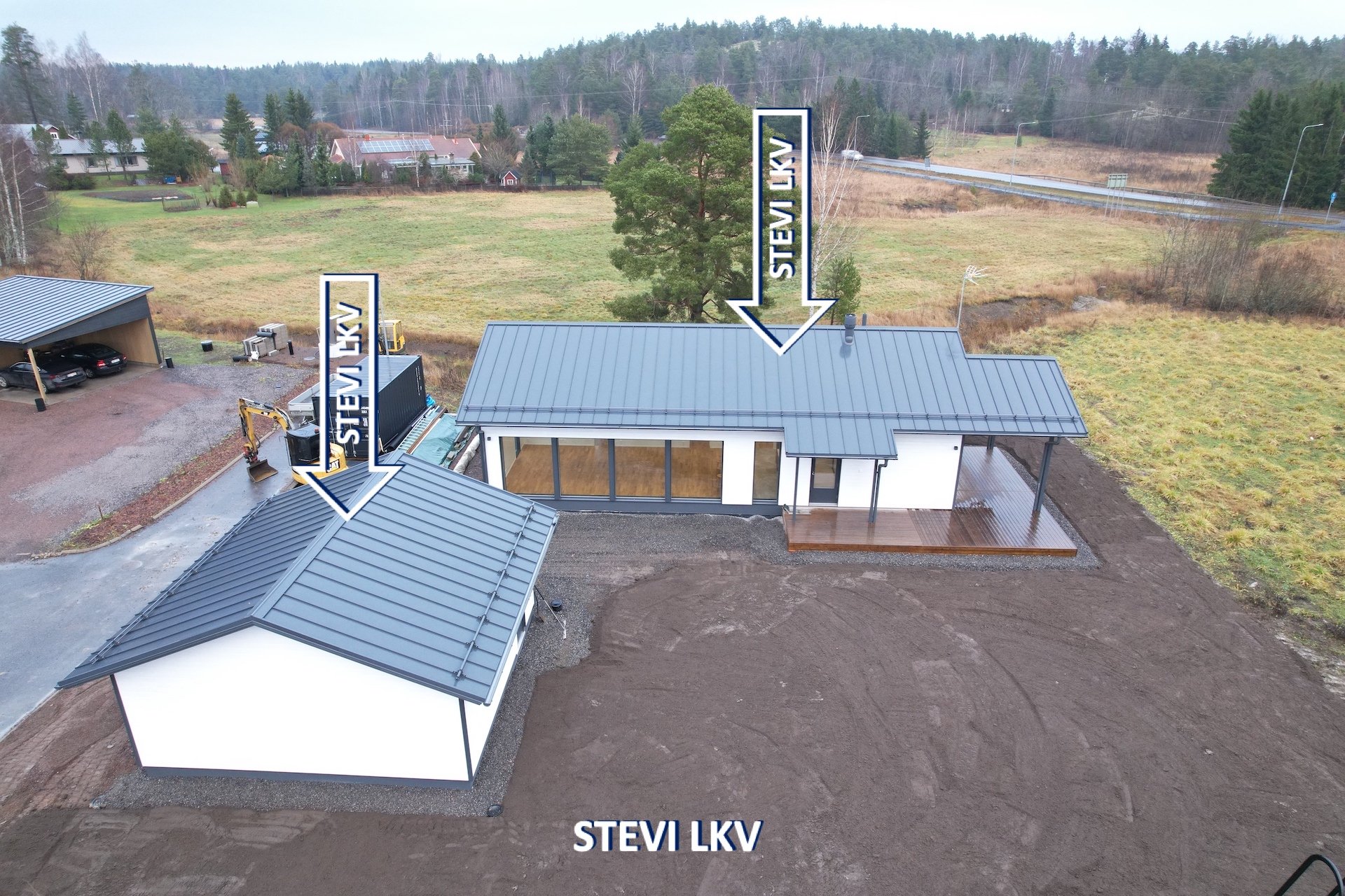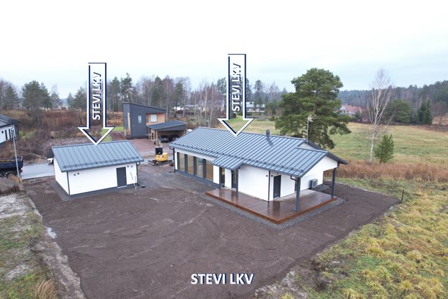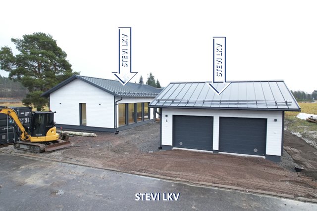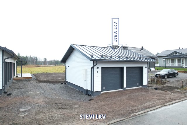 - Lämmin varasto / tekninen huone. Lisäksi kahden auton autotalli.