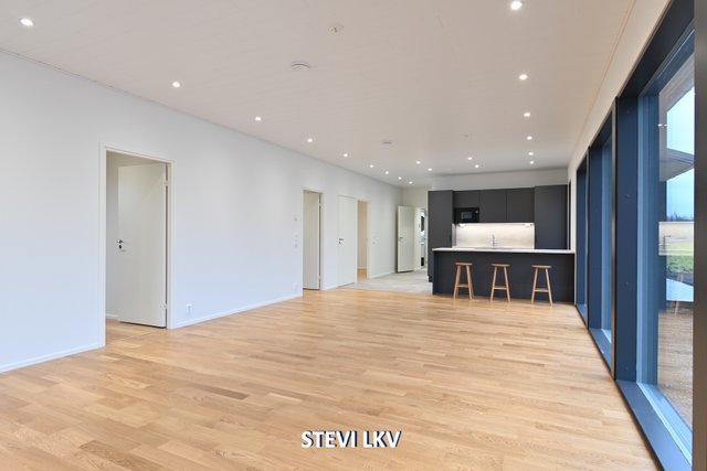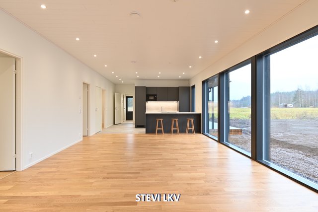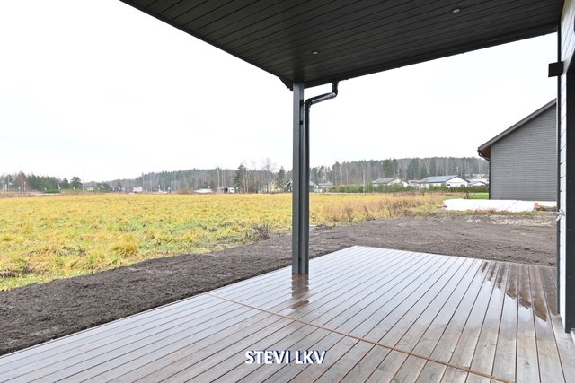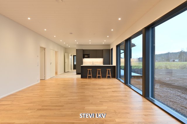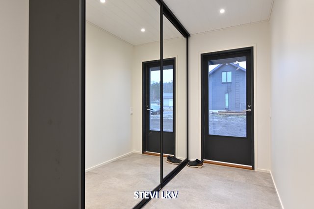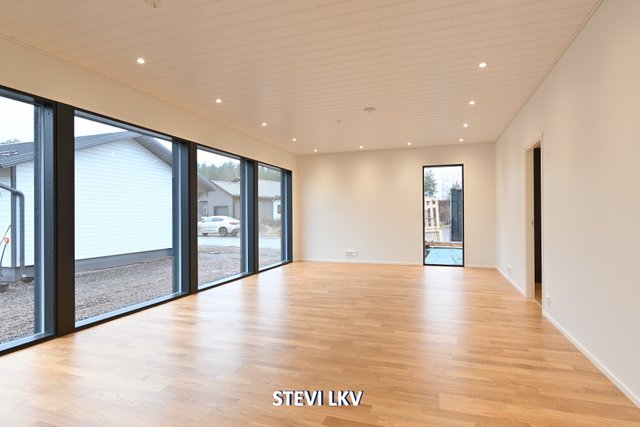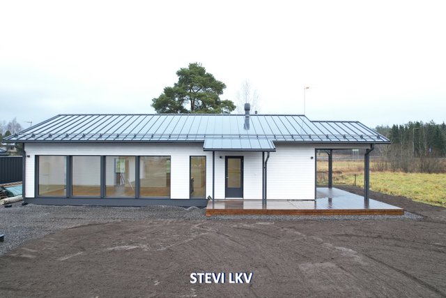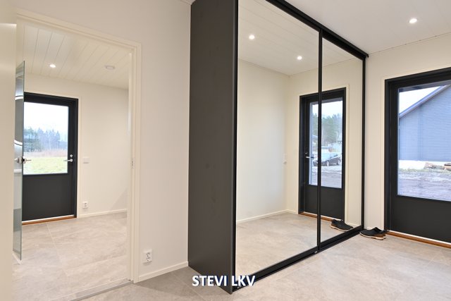 Pohjaratkaisu ja pintamateriaalit ovat tarkoin harkitut (parkettilattiat & laattalattiat ovat 80 cm x 80 cm isoa laattaa). Lukuisat ikkunat luovat mukavan avaran ja valoisan vaikutelman taloon.