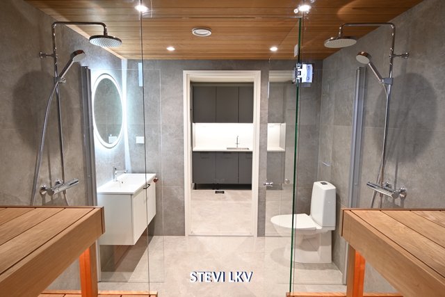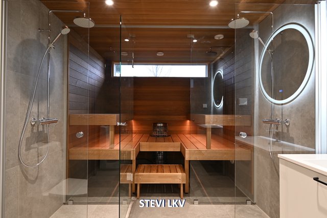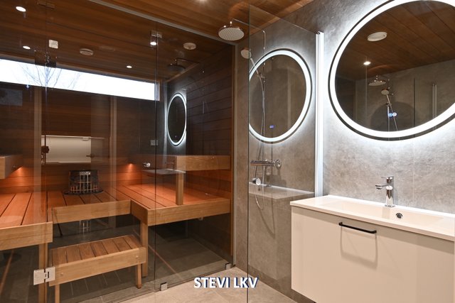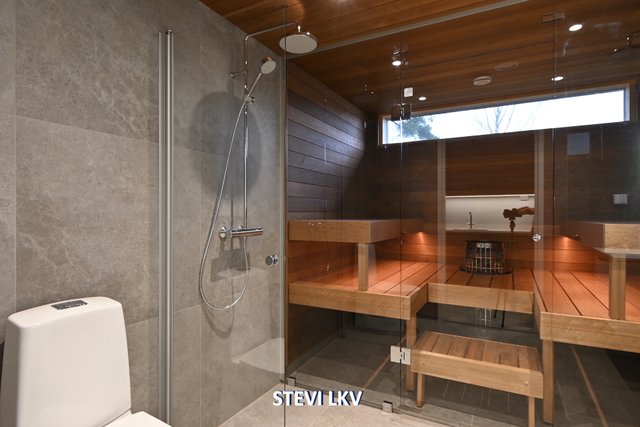 Kodin saunaosasto tarjoaa täydelliset puitteet rentoutumiseen, ja kylpyhuoneessa on tuplasuihkut ja talon toinen wc. Käytännöllinen kodinhoitohuone (kulku myös ulos) on varustettu lattialämmityksellä ja tarjoaa tilaa pesutornille. Lisäksi talossa on erillinen wc.