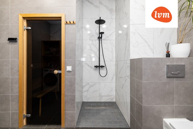 - WC-istuin, suihku, pesukone, pesuallas, allaskaappi, peili, ja lattialämmitys