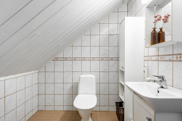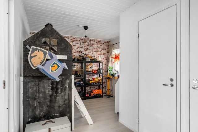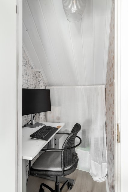 Yläkerrassa lisäksi toinen WC sekä vaatehuone, joka toimii vaikka etätyöpisteenä halutessa.