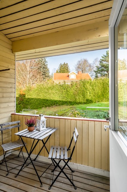 Yläkerrassa 2kpl makuuhuonetta, sekä kolmas makuutila tehty keskitilaan jossa oma parveke.